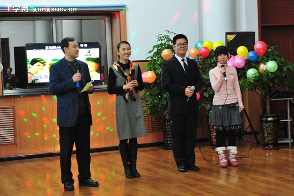 在诗歌《玉楼春》中,联欢晚会拉开了帷幕。思政教研部全体师生为本次晚会自编自演了25个丰富多彩的节目。有来自12级本科生的儿歌串烧,展现思政部同学们的,而与全体教师合唱的歌曲《团结就是力量》更是充分显示出思政部上下团结一心的蓬勃朝气;也有思政部老师们带来的歌曲不断将晚会气氛推向高潮,其中思政部主任陈坤的一曲《塞北的雪》更让大家在这深冬的严寒里体会到了冬雪的美丽,而马原教研室四位老师自编自演的三句半《忠诚奉献――爱思政》诙谐幽默地展现出思政部老师廉洁奉献,乐观向上的精神面貌。晚会间还安排了观众抽奖及抢凳子、踩气球等小游戏环节,老师和学生踊跃参加,现场笑声连连,气氛一片和谐。