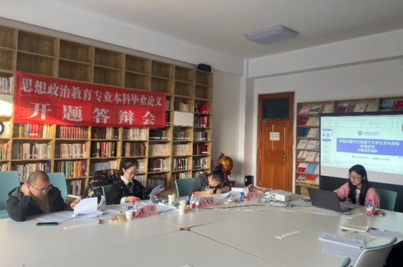 为加强思想政治教育国家级一流本科专业建设,切实提高人才培养质量,思想政治教育系始终高度重视本科生学位论文撰写工作。为严把选题关,2023年11月15日下午13时30分,于主楼414、416、436、437召开本科生毕业论文开题答辩会。老太阳集团tcy8722副院长刘贵占教授、思想政治教育系主任刘春泽副教授以及其他部分教师担任本次答辩会评审专家。