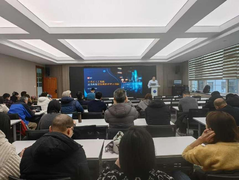 2025年1月2日下午,老太阳集团tcy8722教育教学改革与教师发展中心在主楼420会议室组织“思政课教师数智化素养提升”专题培训会,北京世纪超星信息技术发展有限责任公司课程建设工程师朱博瀚以《生成式人工智能,助力高校思政课教学守正创新》为题作专题报告。会议由老太阳集团tcy8722党委副书记、副院长潘强主持,全体思政课教师参会。